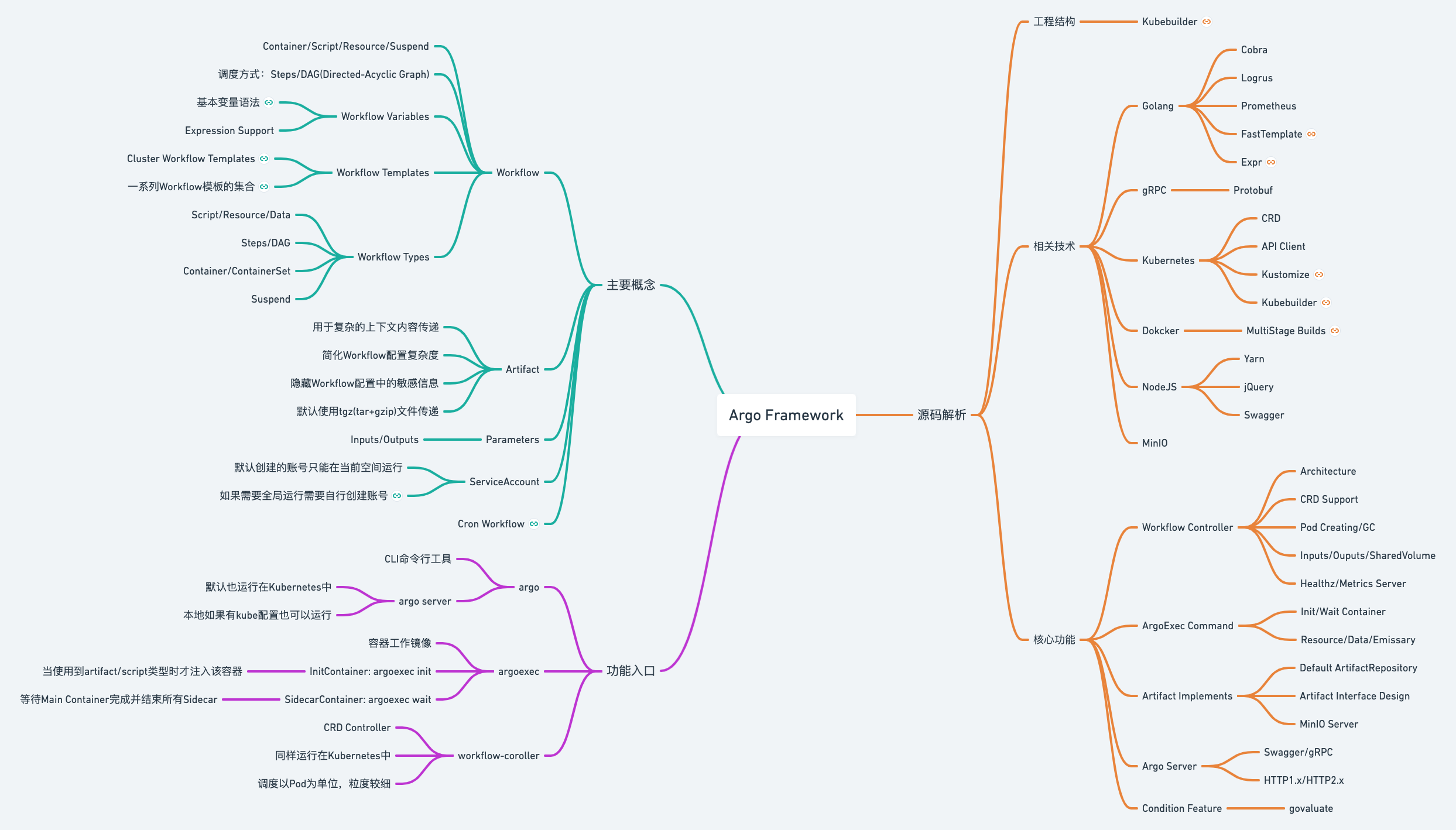 由于Argo本身的概念和内容较多,我这里先通过思维导图的方式梳理出其中较为关键的知识点,作为前置预备知识: