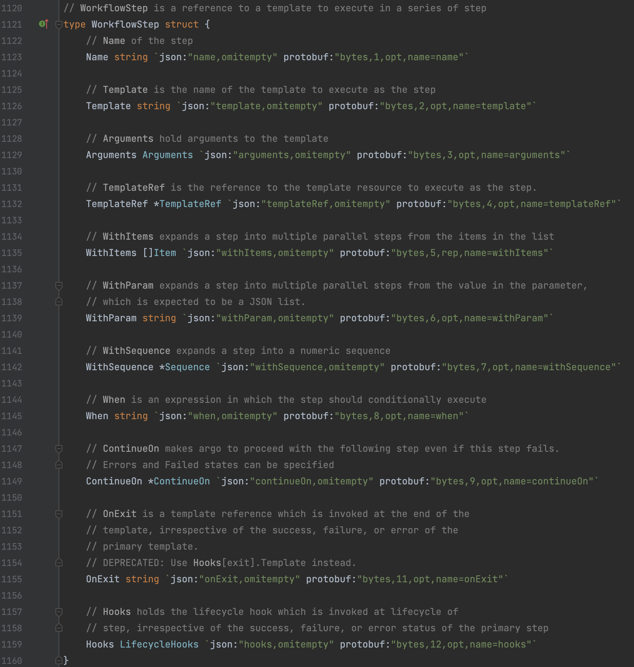 WorkflowStep | ![]() 是的,你没猜错,这个是用来管理执行流程控制的每一个操作步骤对象。该步骤对象必然会绑定一个 Template对象。Workflow的初始化执行步骤是通过woc.execWf.Spec.Entrypoint 作为入口Template。 |