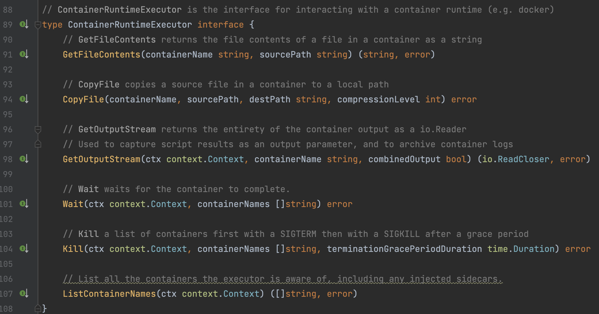 ContainerRuntimeExecutor | ![]() 如注释所示,用于与 Docker Container进行交互的API接口。 |