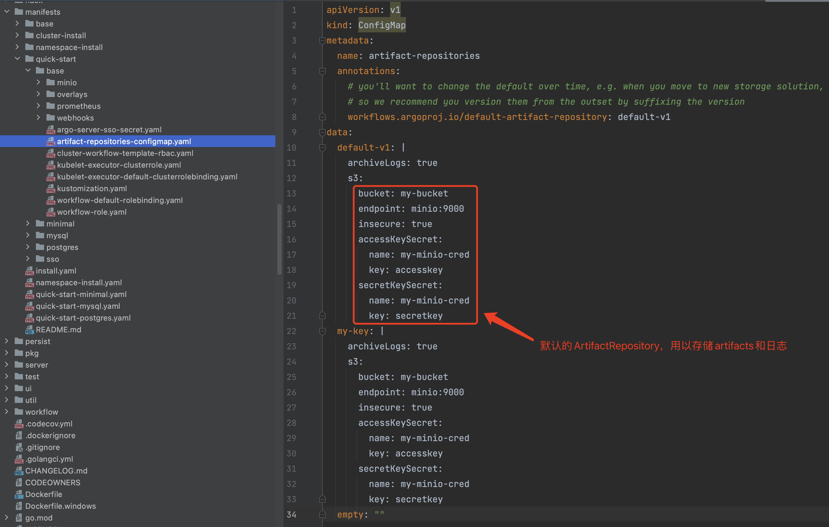 manifests | Argo的安装配置文件,都是些yaml文件,使用kustomize工具管理,关于kustomize工具的介绍请参考:https://kubernetes.io/zh/docs/tasks/manage-kubernetes-objects/kustomization/ |