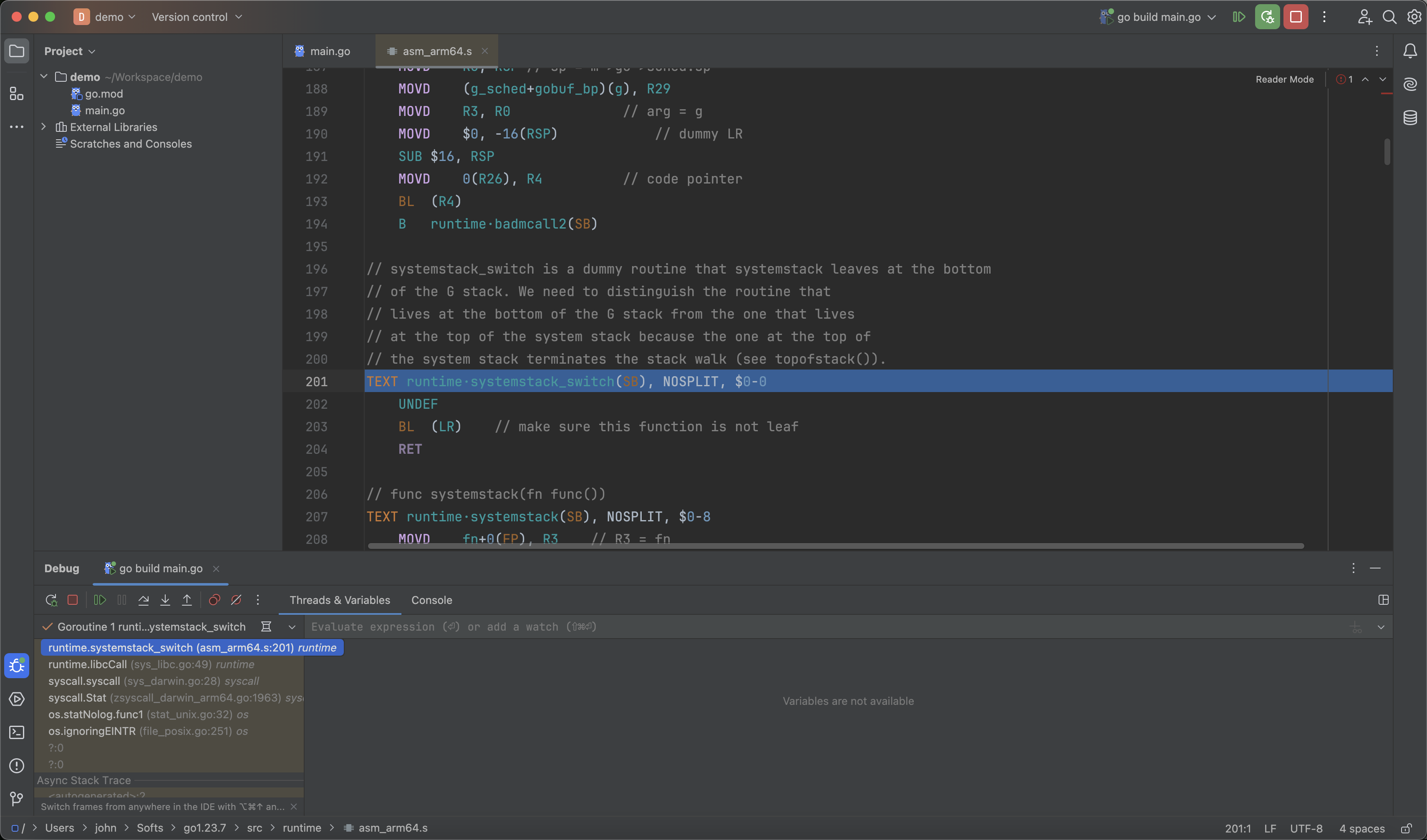 MacOS 15.3.2 (24D2082) M4芯片 Go版本:1.22.x到1.24.xGoland版本:2024.3.5
